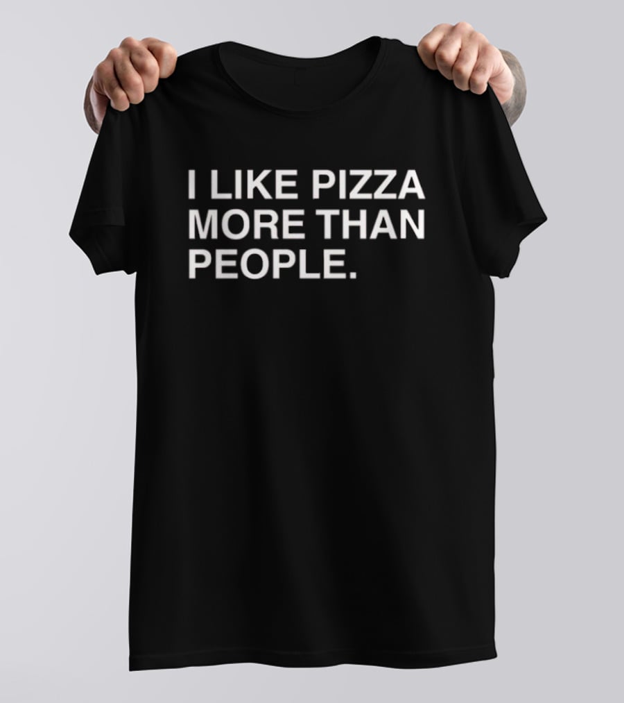 I Like Pizza More Than People Shirt made from 100% pre-shrunk ring-spun cotton, unisex regular fit based on U.S. standard sizing. The shirt is designed, cut, sewn, and printed in the United States. Available in sizes S-5XL.