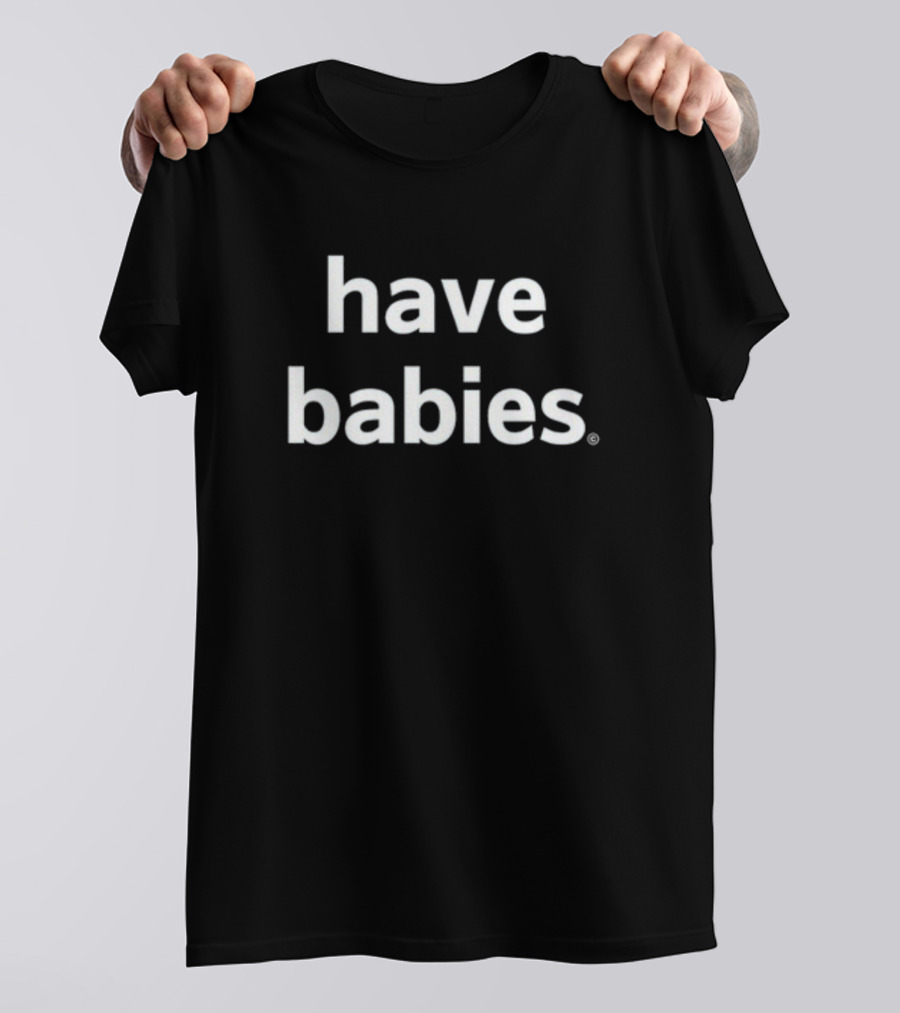 Have Babies Shirt made from 100% pre-shrunk ring-spun cotton, unisex regular fit based on U.S. standard sizing. The shirt is designed, cut, sewn, and printed in the United States. Available in sizes S-5XL.