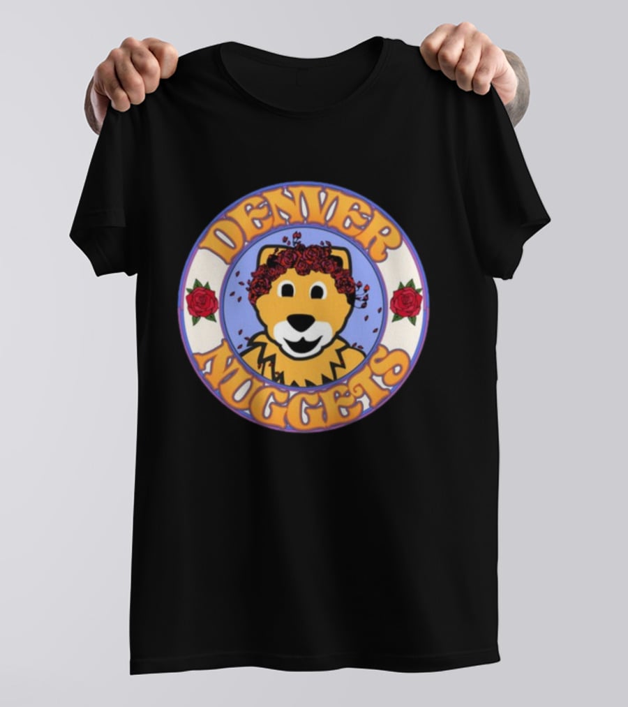 Denver Nuggets Floral Mascot Circle Shirt made from 100% pre-shrunk ring-spun cotton, unisex regular fit based on U.S. standard sizing. The shirt is designed, cut, sewn, and printed in the United States. Available in sizes S-5XL.