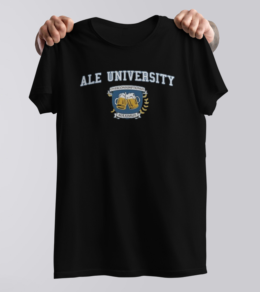 Ale University Overconsumptionus Maximus Beer Mugs Crest T-Shirt