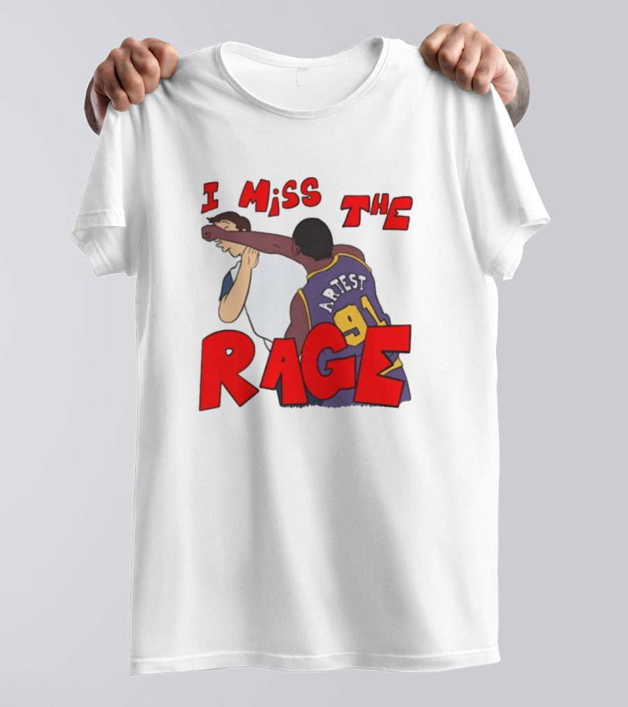 Lucca International I Miss The Rage Artest 91 Shirt made from 100% pre-shrunk ring-spun cotton, unisex regular fit based on U.S. standard sizing. The shirt is designed, cut, sewn, and printed in the United States. Available in sizes S-5XL.