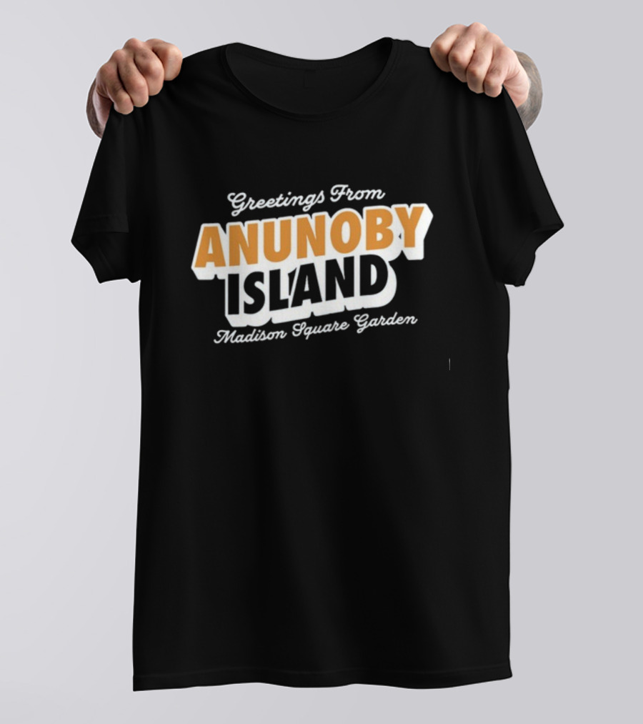 Greetings From Anunoby Island Madison Square Garden Shirt made from 100% pre-shrunk ring-spun cotton, unisex regular fit based on U.S. standard sizing. The shirt is designed, cut, sewn, and printed in the United States. Available in sizes S-5XL.