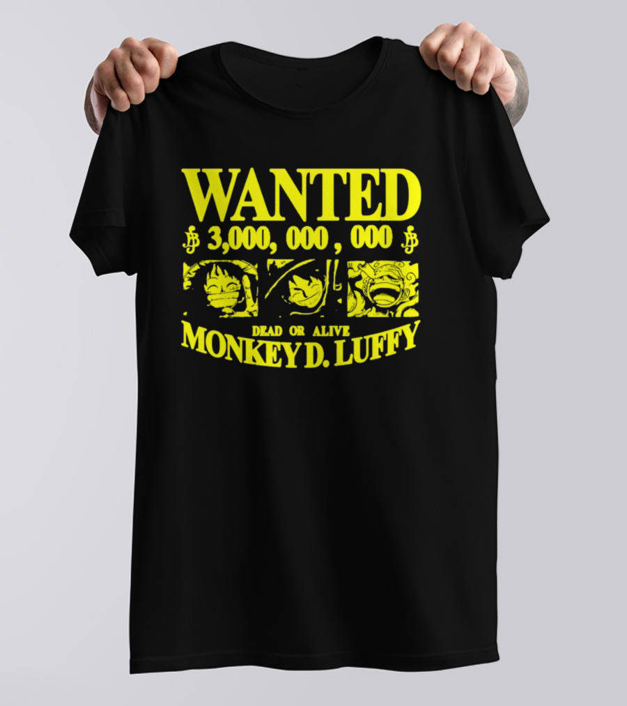 WANTED 3,000,000,000 MONKEY D. LUFFY STRAWHAT PIRATE Shirt made from 100% pre-shrunk ring-spun cotton, unisex regular fit based on U.S. standard sizing. The shirt is designed, cut, sewn, and printed in the United States. Available in sizes S-5XL.