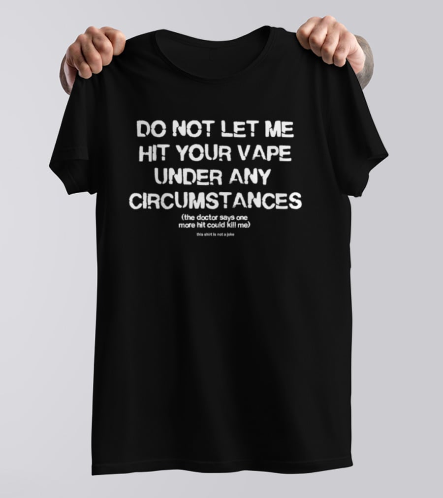 Do Not Let Me Hit Your Vape Under Any Circumstances the Doctor Says One More Hit Could Kill Me This Shirt Is Not a Joke Shirt made from 100% pre-shrunk ring-spun cotton, unisex regular fit based on U.S. standard sizing. The shirt is designed, cut, sewn, and printed in the United States. Available in sizes S-5XL.