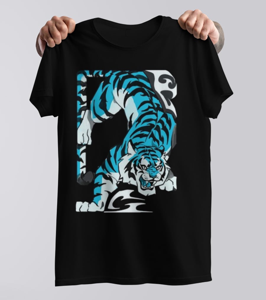 Mawili Poisonp1nk Blue Tiger Stripes Shirt made from 100% pre-shrunk ring-spun cotton, unisex regular fit based on U.S. standard sizing. The shirt is designed, cut, sewn, and printed in the United States. Available in sizes S-5XL.
