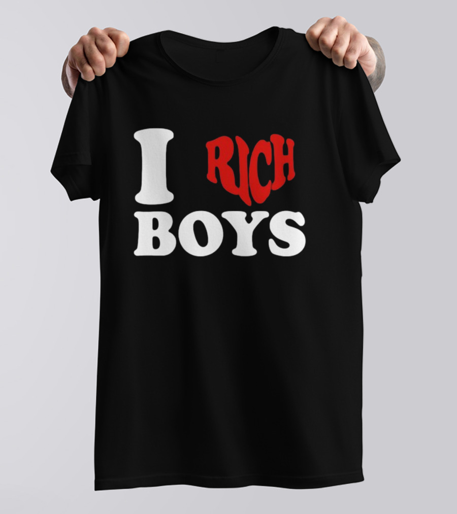 I Love Rich Boys Shirt made from 100% pre-shrunk ring-spun cotton, unisex regular fit based on U.S. standard sizing. The shirt is designed, cut, sewn, and printed in the United States. Available in sizes S-5XL.