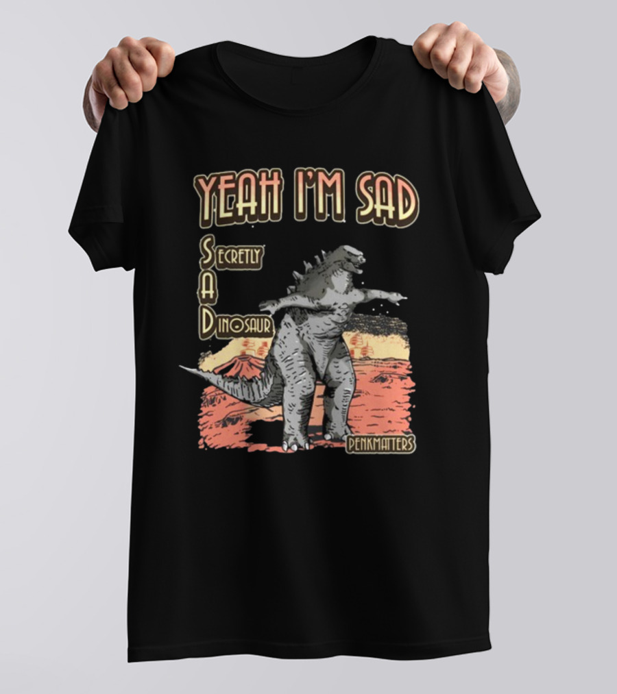 Yeah I'm Sad Secretly A Dinosaur Penkmatter's Dinosaur Art Retro Monster Scene T-Shirt