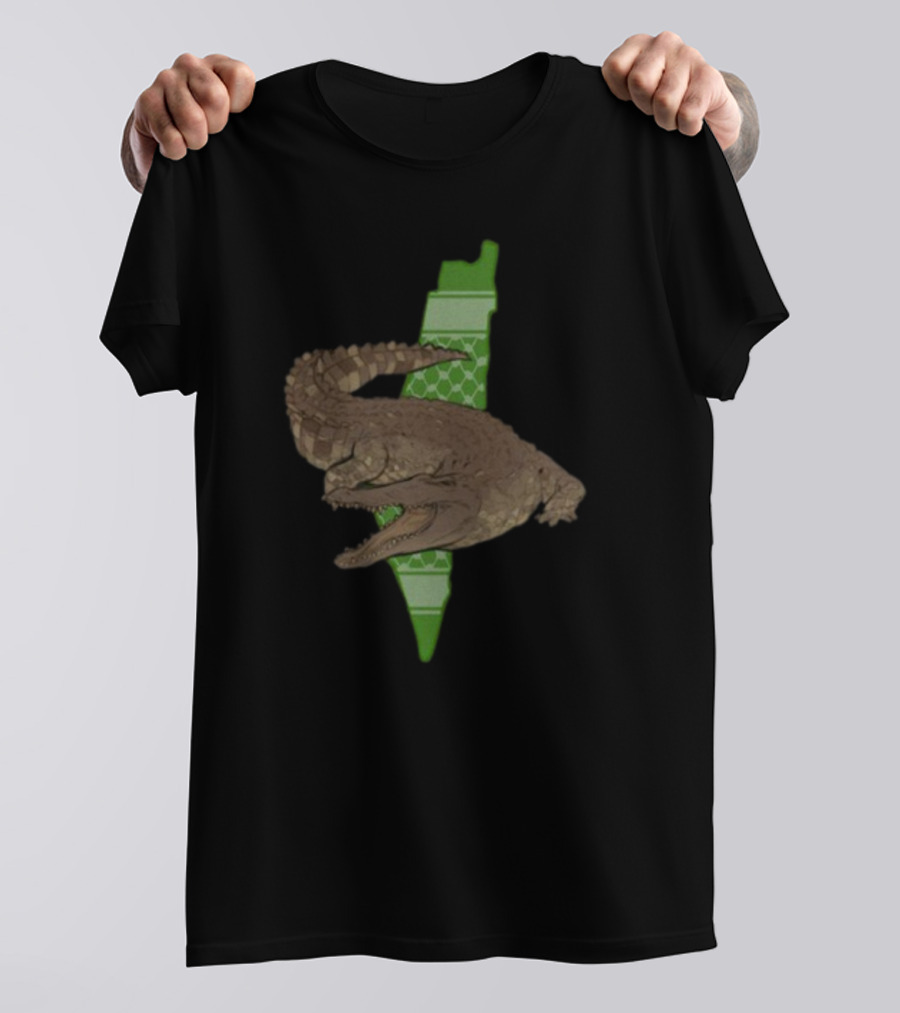 Gators Daily Palestinian Crocodile Map Shirt made from 100% pre-shrunk ring-spun cotton, unisex regular fit based on U.S. standard sizing. The shirt is designed, cut, sewn, and printed in the United States. Available in sizes S-5XL.