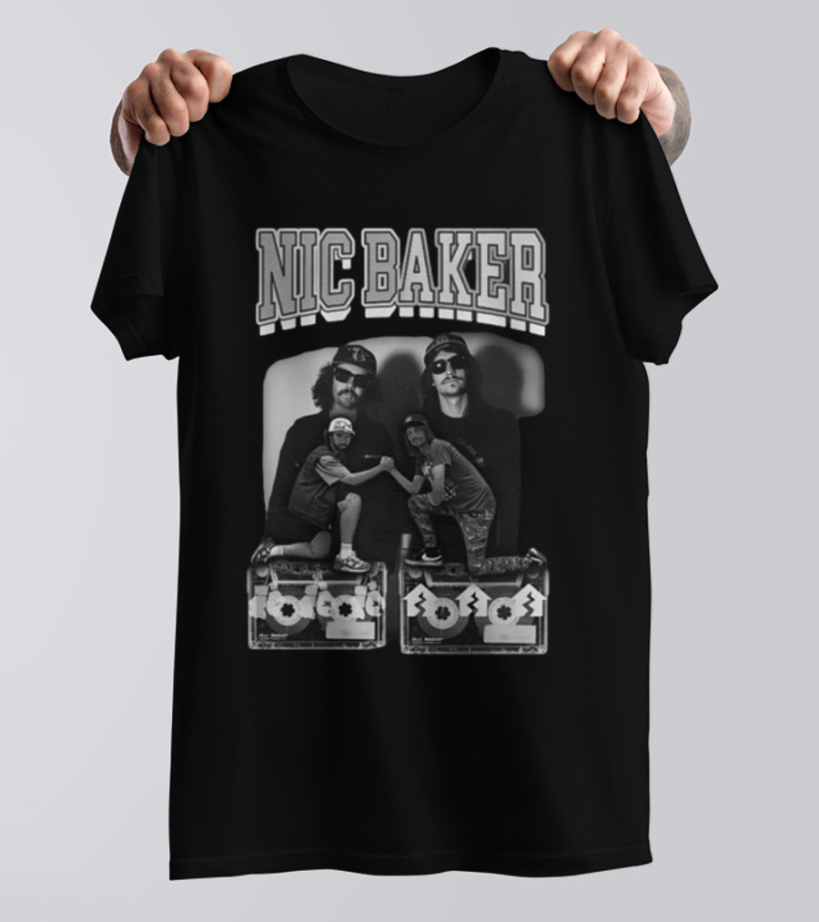 Nic Baker Mixtape 80s Style Skateboarders Retro Black and White Photography Shirt made from 100% pre-shrunk ring-spun cotton, unisex regular fit based on U.S. standard sizing. The shirt is designed, cut, sewn, and printed in the United States. Available in sizes S-5XL.