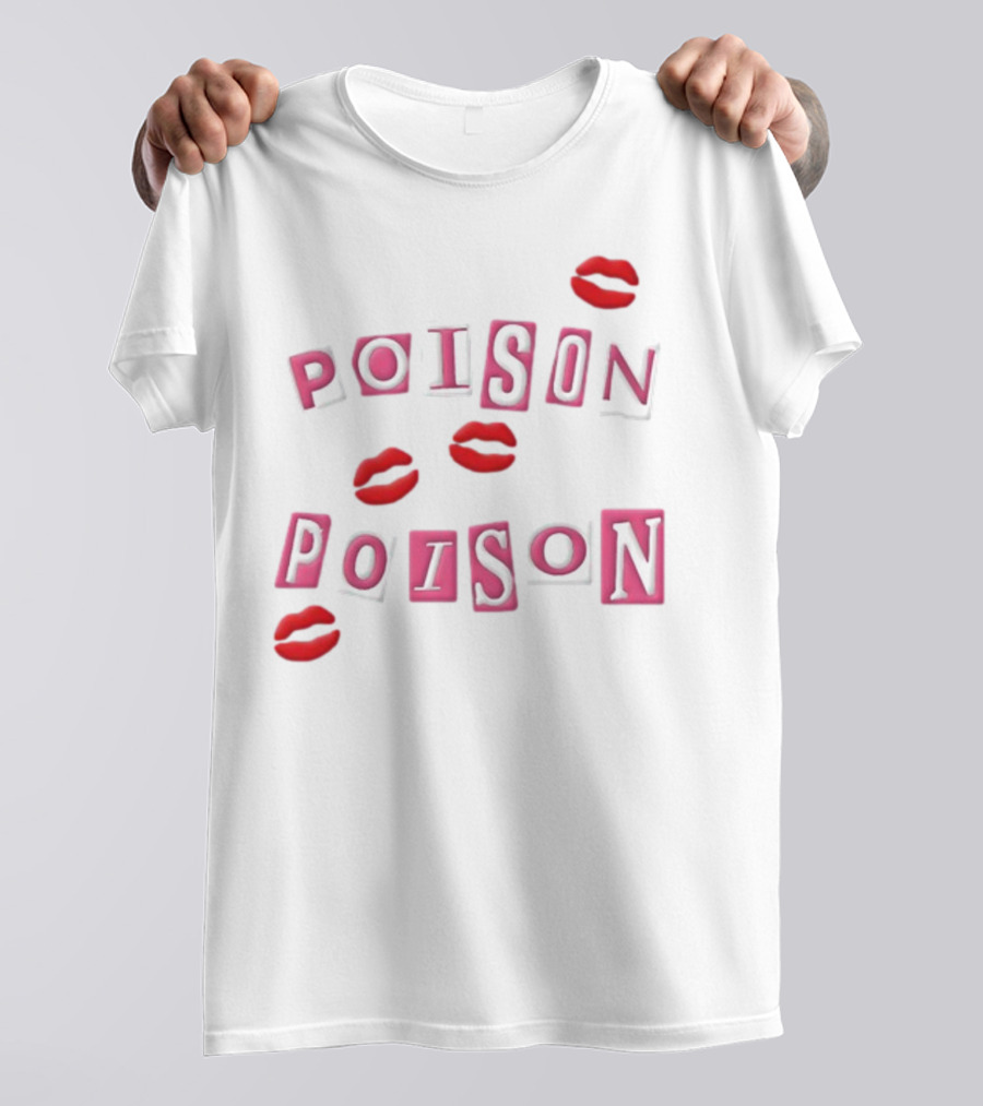 POISON POISON Red Lips Text Blocks Shirt made from 100% pre-shrunk ring-spun cotton, unisex regular fit based on U.S. standard sizing. The shirt is designed, cut, sewn, and printed in the United States. Available in sizes S-5XL.