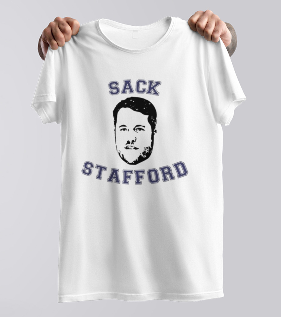 Sack Stafford Football Quarterback Fan Shirt made from 100% pre-shrunk ring-spun cotton, unisex regular fit based on U.S. standard sizing. The shirt is designed, cut, sewn, and printed in the United States. Available in sizes S-5XL.