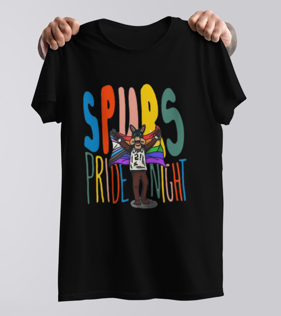 Spurs Pride Night Rainbow Flag Mascot 21 Shirt made from 100% pre-shrunk ring-spun cotton, unisex regular fit based on U.S. standard sizing. The shirt is designed, cut, sewn, and printed in the United States. Available in sizes S-5XL.