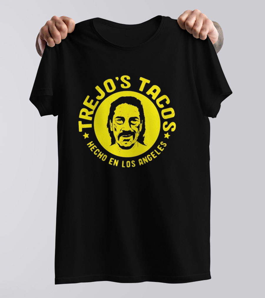 Trejo's Tacos Hecho En Los Angeles Yellow Shirt made from 100% pre-shrunk ring-spun cotton, unisex regular fit based on U.S. standard sizing. The shirt is designed, cut, sewn, and printed in the United States. Available in sizes S-5XL.