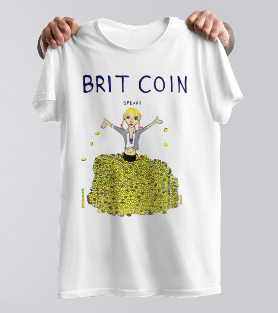 Dave Portnoy Brit Coin Spears Dancing in Gold Shirt made from 100% pre-shrunk ring-spun cotton, unisex regular fit based on U.S. standard sizing. The shirt is designed, cut, sewn, and printed in the United States. Available in sizes S-5XL.