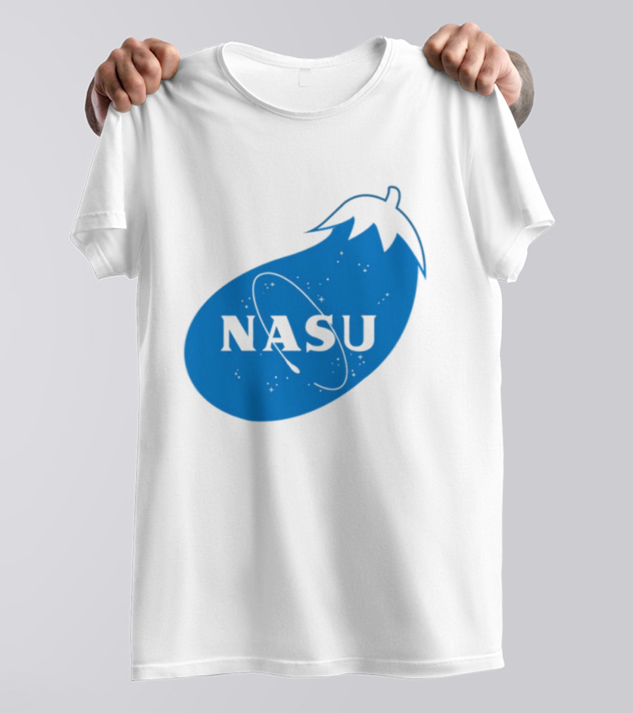 NASA Eggplant Nasu Space Shirt made from 100% pre-shrunk ring-spun cotton, unisex regular fit based on U.S. standard sizing. The shirt is designed, cut, sewn, and printed in the United States. Available in sizes S-5XL.