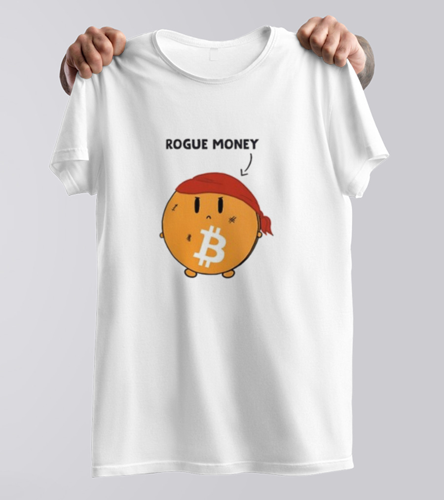 Lina Seiche Bitcoin Rogue Money Icon with Red Bandana Shirt made from 100% pre-shrunk ring-spun cotton, unisex regular fit based on U.S. standard sizing. The shirt is designed, cut, sewn, and printed in the United States. Available in sizes S-5XL.