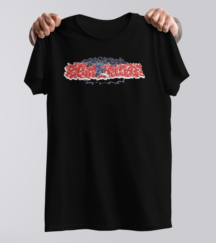Splitknuckle Monster Red Graffiti Text With Dark Blue Creature T-Shirt