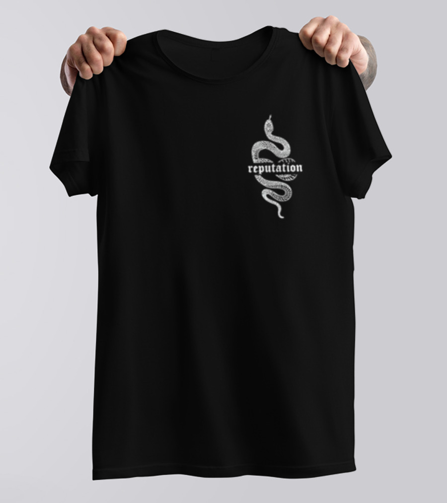 Taylor Swift Reputation Album Snake Shirt made from 100% pre-shrunk ring-spun cotton, unisex regular fit based on U.S. standard sizing. The shirt is designed, cut, sewn, and printed in the United States. Available in sizes S-5XL.