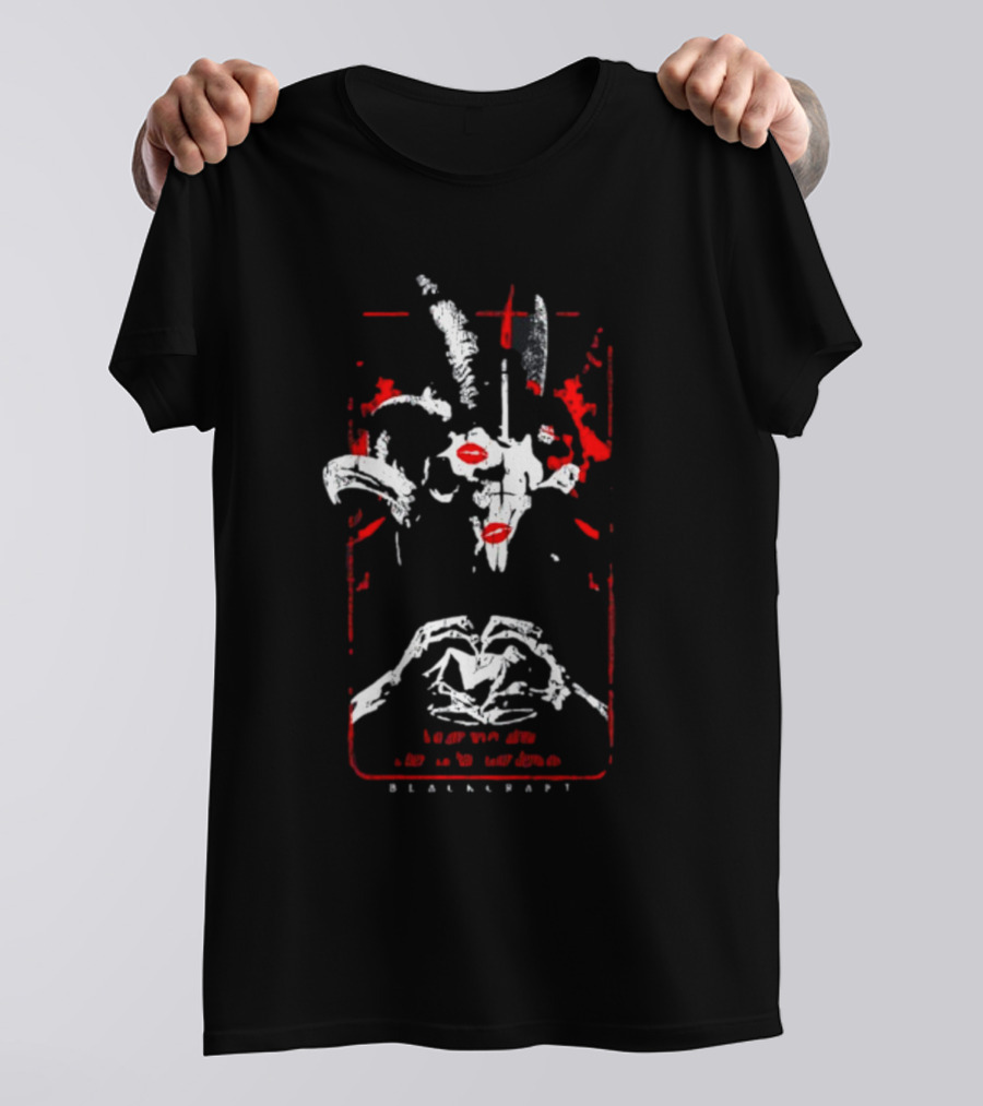 Blackcraftcult Demonic Goat Skull With Red Accents And Hand Heart T-Shirt