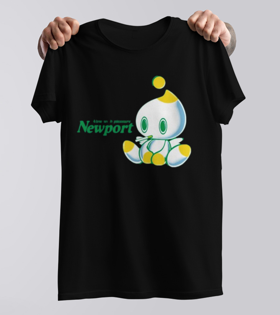 Newport Alive With Pleasure Cute Character Sitting Shirt made from 100% pre-shrunk ring-spun cotton, unisex regular fit based on U.S. standard sizing. The shirt is designed, cut, sewn, and printed in the United States. Available in sizes S-5XL.