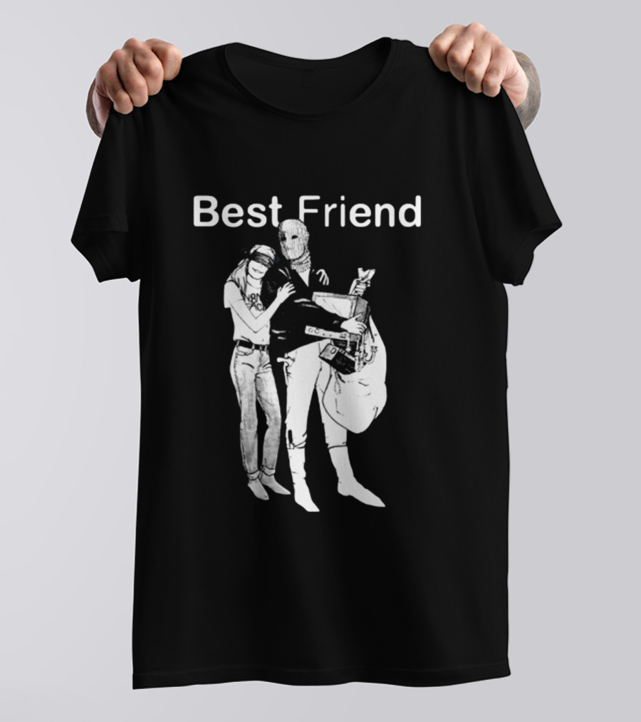 Best Friend N8noface Masked Duo Shirt made from 100% pre-shrunk ring-spun cotton, unisex regular fit based on U.S. standard sizing. The shirt is designed, cut, sewn, and printed in the United States. Available in sizes S-5XL.