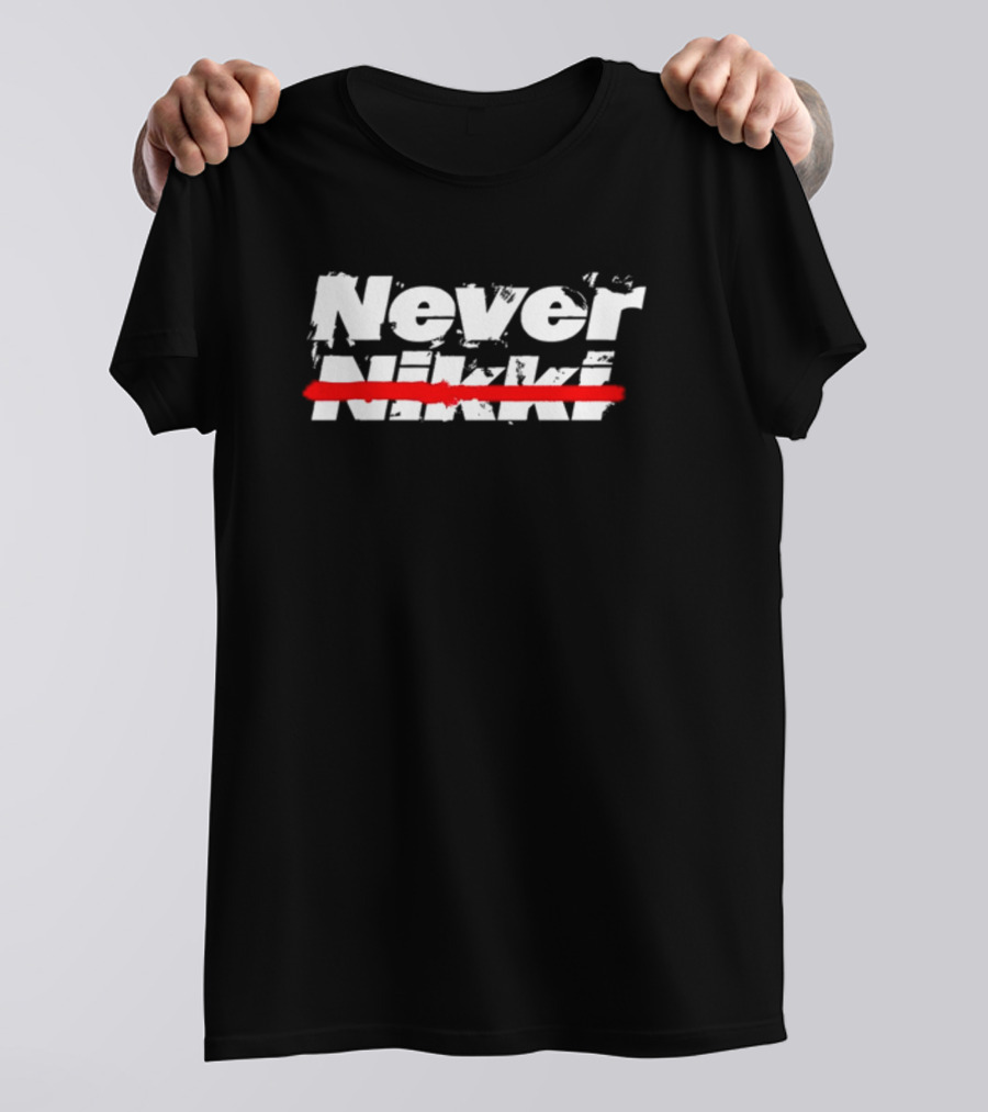 Never Nikki Crossed Out Red Line Shirt made from 100% pre-shrunk ring-spun cotton, unisex regular fit based on U.S. standard sizing. The shirt is designed, cut, sewn, and printed in the United States. Available in sizes S-5XL.