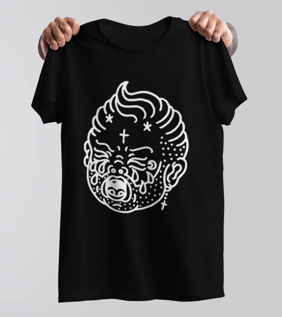 Wade Macneil Crybaby Monochrome Shirt made from 100% pre-shrunk ring-spun cotton, unisex regular fit based on U.S. standard sizing. The shirt is designed, cut, sewn, and printed in the United States. Available in sizes S-5XL.