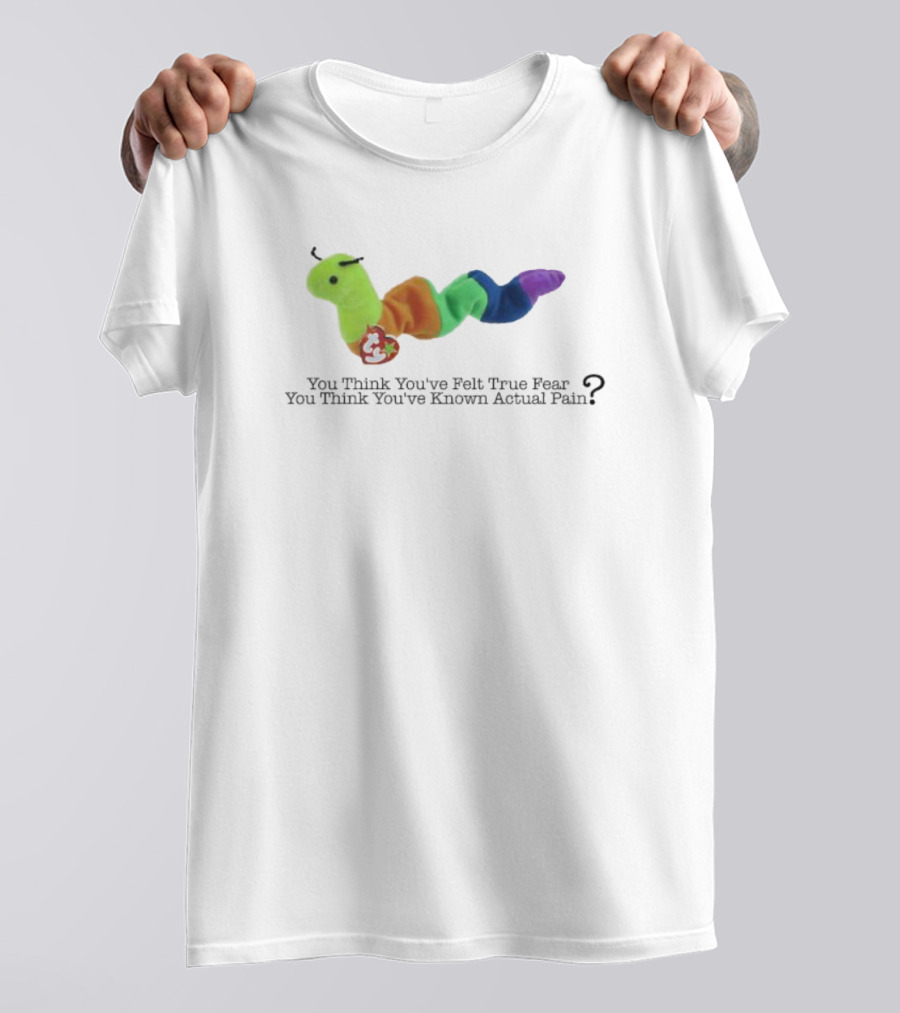 You Think You’ve Felt True Fear Known Actual Pain Rainbow Plush Shirt made from 100% pre-shrunk ring-spun cotton, unisex regular fit based on U.S. standard sizing. The shirt is designed, cut, sewn, and printed in the United States. Available in sizes S-5XL.