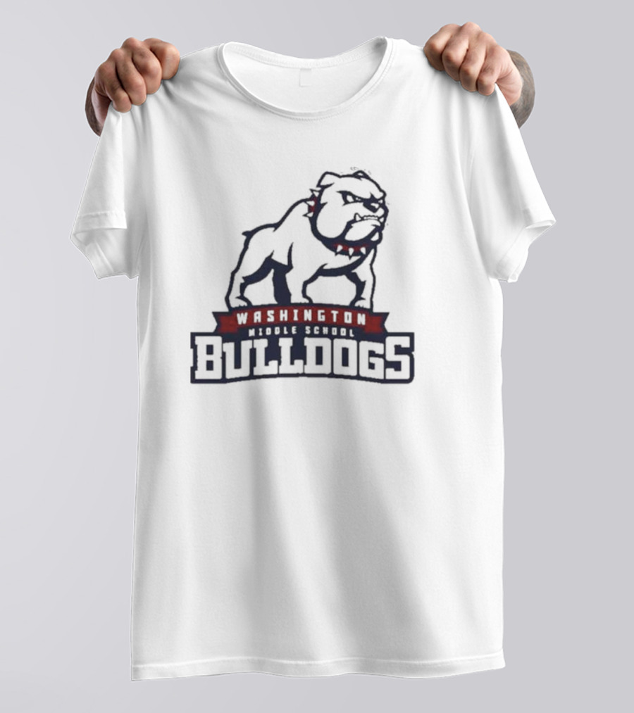 Washington Middle School Bulldogs Mascot Shirt made from 100% pre-shrunk ring-spun cotton, unisex regular fit based on U.S. standard sizing. The shirt is designed, cut, sewn, and printed in the United States. Available in sizes S-5XL.