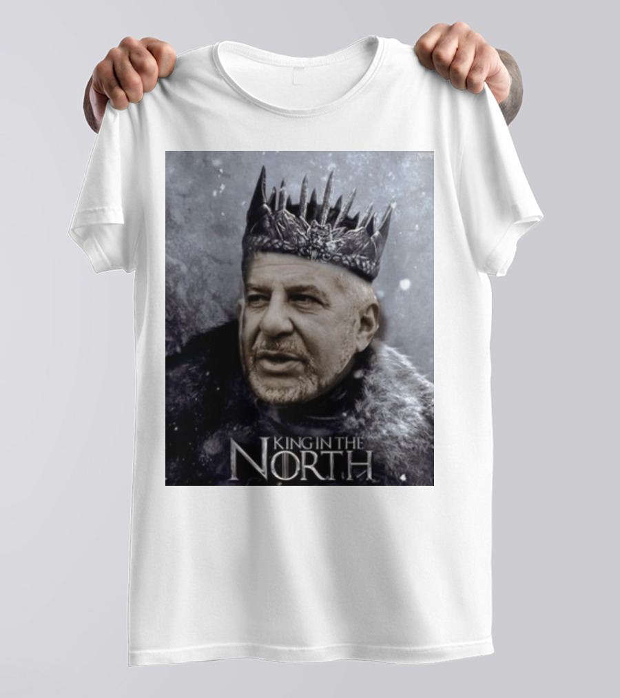 Bill Belichick King In The North Game of Thrones Style Crown and Fur Cloak Shirt made from 100% pre-shrunk ring-spun cotton, unisex regular fit based on U.S. standard sizing. The shirt is designed, cut, sewn, and printed in the United States. Available in sizes S-5XL.