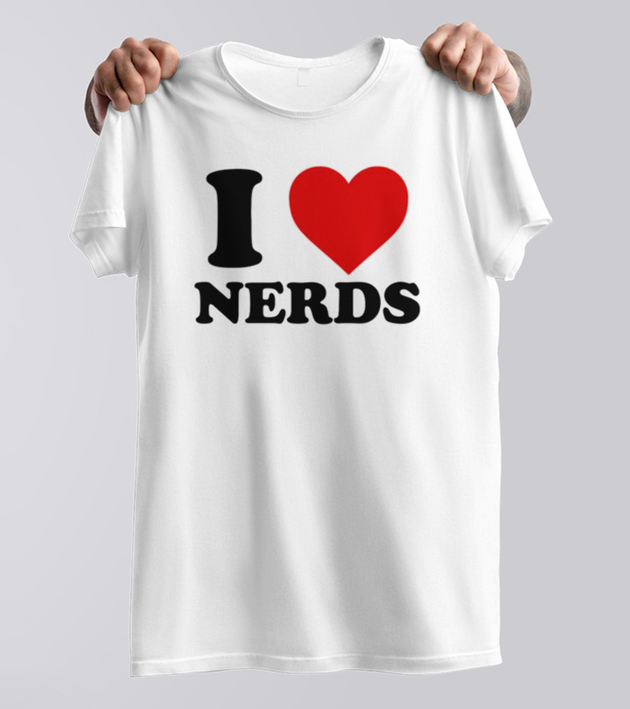 I Heart Nerds Shirt made from 100% pre-shrunk ring-spun cotton, unisex regular fit based on U.S. standard sizing. The shirt is designed, cut, sewn, and printed in the United States. Available in sizes S-5XL.