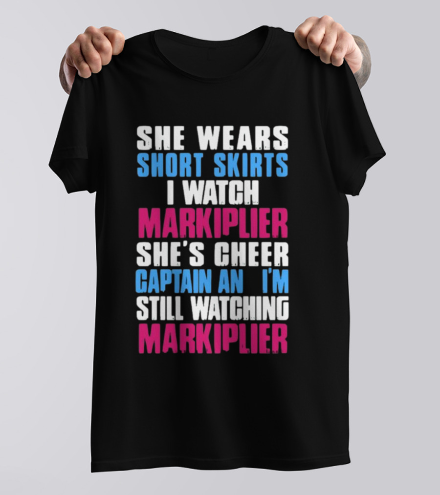 She Wears Short Skirts I Watch Markiplier She's Cheer Captain I'm Still Watching Markiplier Shirt made from 100% pre-shrunk ring-spun cotton, unisex regular fit based on U.S. standard sizing. The shirt is designed, cut, sewn, and printed in the United States. Available in sizes S-5XL.