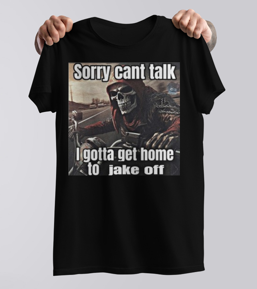 Sorry Cant Talk I Gotta Get Home To Jake Off Motorcycle Skull Rider T-Shirt