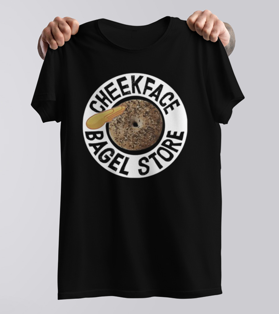 Cheekface Bagel Store Sesame Bagel with Butter Retro Circular Shirt made from 100% pre-shrunk ring-spun cotton, unisex regular fit based on U.S. standard sizing. The shirt is designed, cut, sewn, and printed in the United States. Available in sizes S-5XL.