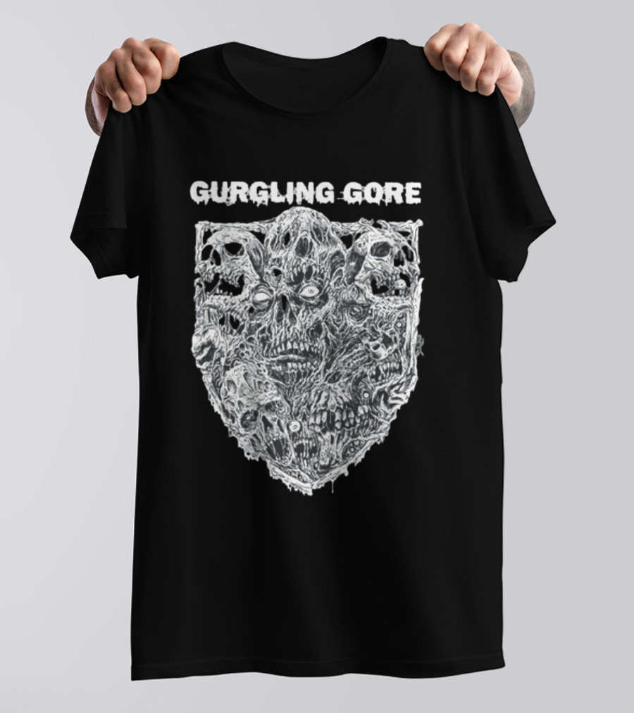 Gurgling Gore Skull Horror Shield T-Shirt