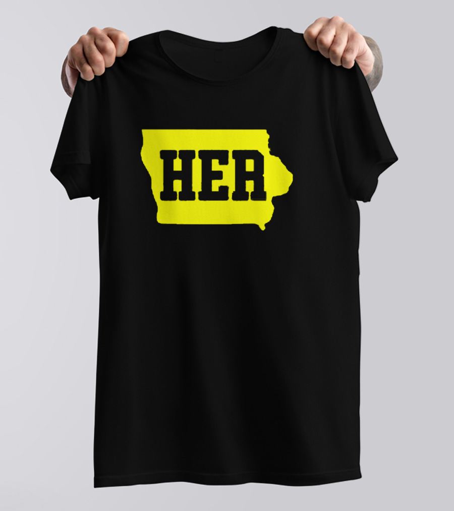 Dave Portnoy Hawkeye HER Caitlin Clark Iowa Map Shirt made from 100% pre-shrunk ring-spun cotton, unisex regular fit based on U.S. standard sizing. The shirt is designed, cut, sewn, and printed in the United States. Available in sizes S-5XL.