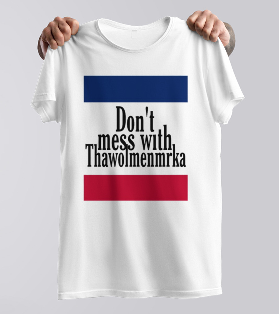Don't Mess With Thawolmenmrka Blue Red Stripes Shirt made from 100% pre-shrunk ring-spun cotton, unisex regular fit based on U.S. standard sizing. The shirt is designed, cut, sewn, and printed in the United States. Available in sizes S-5XL.