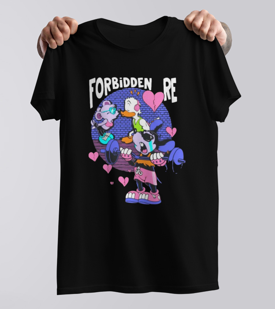 FORBIDDEN RE Broke Heart Cartoon Parody with Weights and Pink Hearts Shirt made from 100% pre-shrunk ring-spun cotton, unisex regular fit based on U.S. standard sizing. The shirt is designed, cut, sewn, and printed in the United States. Available in sizes S-5XL.