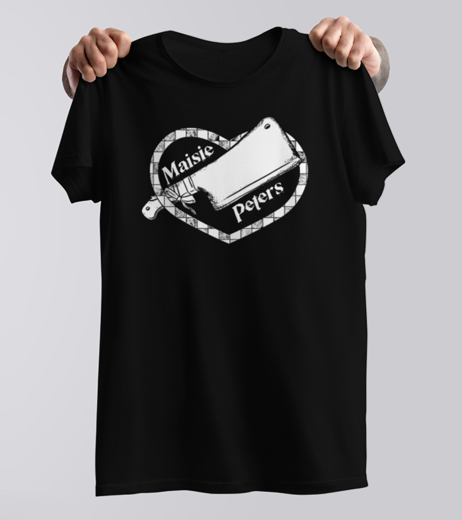 Maisie Peters Cleaver Heart Motif Shirt made from 100% pre-shrunk ring-spun cotton, unisex regular fit based on U.S. standard sizing. The shirt is designed, cut, sewn, and printed in the United States. Available in sizes S-5XL.