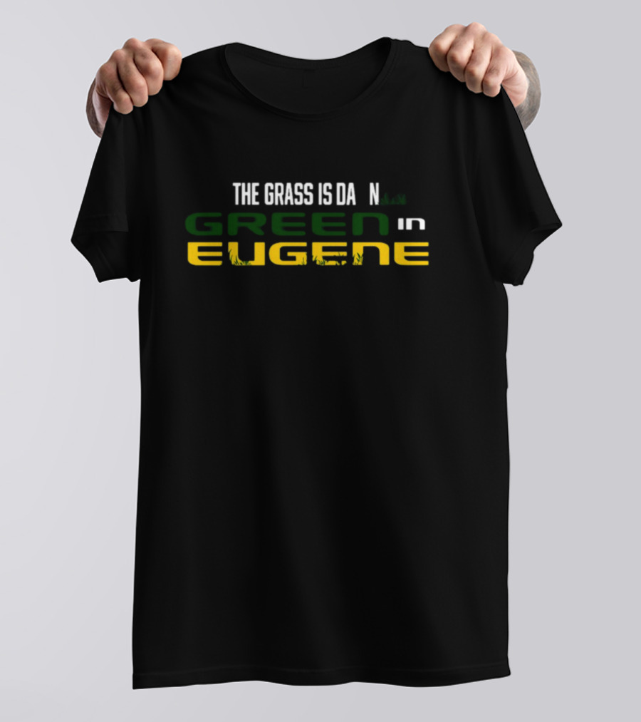 The Grass Is Green In Eugene Shirt made from 100% pre-shrunk ring-spun cotton, unisex regular fit based on U.S. standard sizing. The shirt is designed, cut, sewn, and printed in the United States. Available in sizes S-5XL.