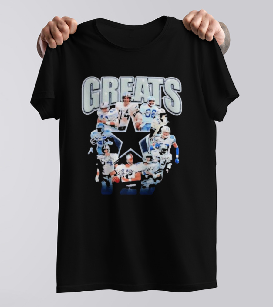 Dallas Cowboys All Time Greats Navy Signature Football Player Star Shirt made from 100% pre-shrunk ring-spun cotton, unisex regular fit based on U.S. standard sizing. The shirt is designed, cut, sewn, and printed in the United States. Available in sizes S-5XL.