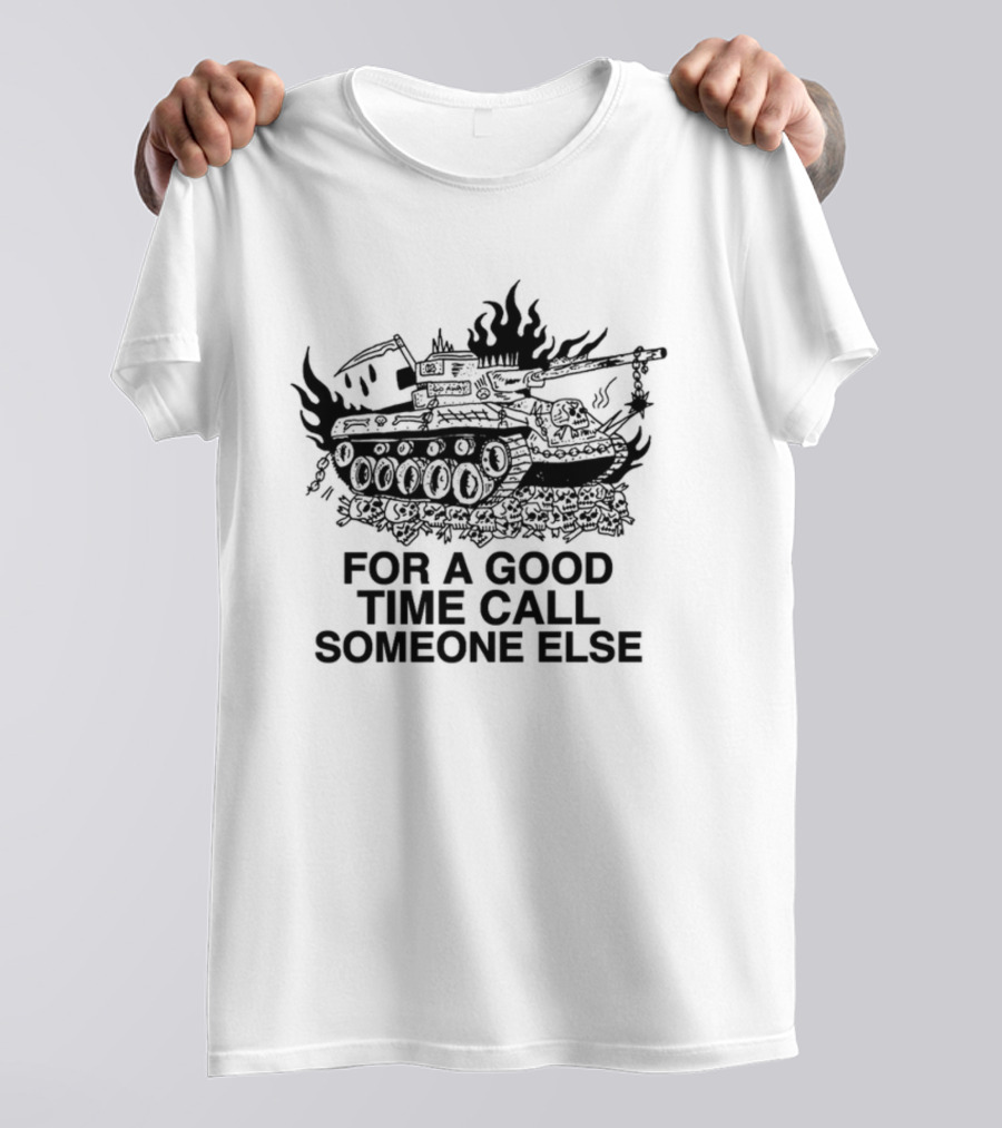 Heavyslime Store For a Good Time Call Someone Else Tank Shirt made from 100% pre-shrunk ring-spun cotton, unisex regular fit based on U.S. standard sizing. The shirt is designed, cut, sewn, and printed in the United States. Available in sizes S-5XL.