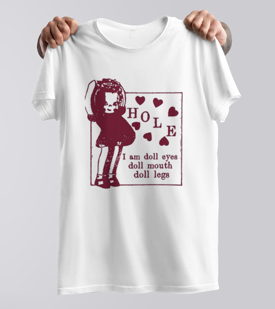 Hole I Am Doll Eyes Doll Mouth Doll Legs Hearts Shirt made from 100% pre-shrunk ring-spun cotton, unisex regular fit based on U.S. standard sizing. The shirt is designed, cut, sewn, and printed in the United States. Available in sizes S-5XL.