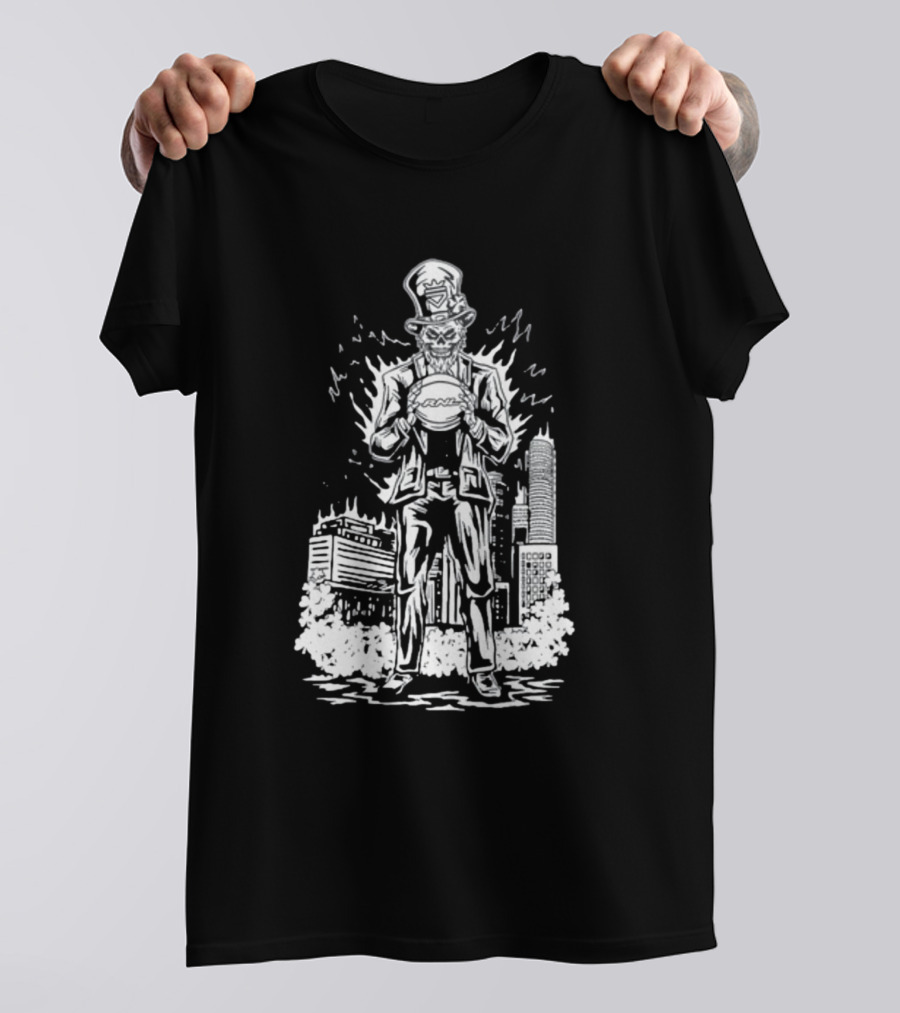Richandlonely Prestige Boston Uncle Sam Basketball City Skyline Shirt made from 100% pre-shrunk ring-spun cotton, unisex regular fit based on U.S. standard sizing. The shirt is designed, cut, sewn, and printed in the United States. Available in sizes S-5XL.
