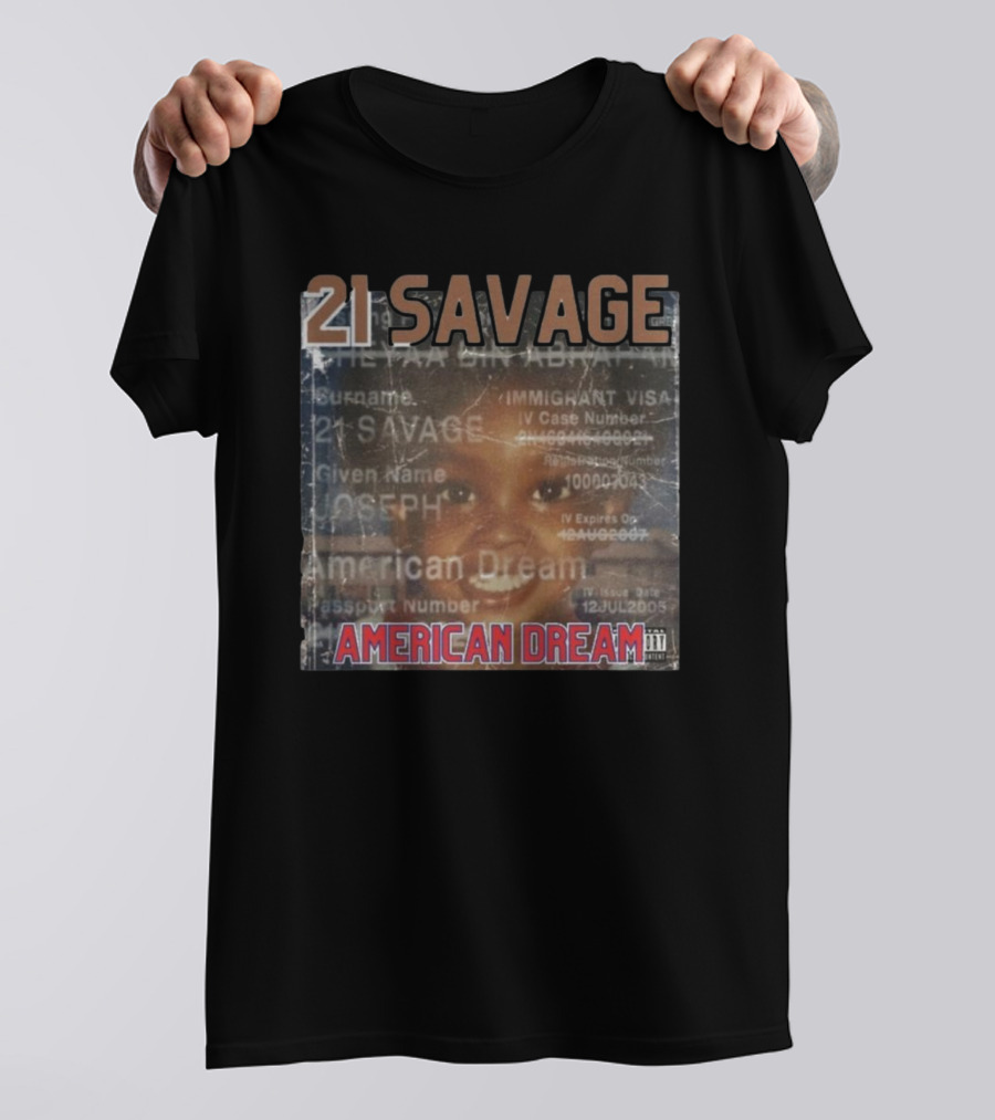 21 Savage Joseph American Dream Album Cover Art Hip Hop Shirt made from 100% pre-shrunk ring-spun cotton, unisex regular fit based on U.S. standard sizing. The shirt is designed, cut, sewn, and printed in the United States. Available in sizes S-5XL.