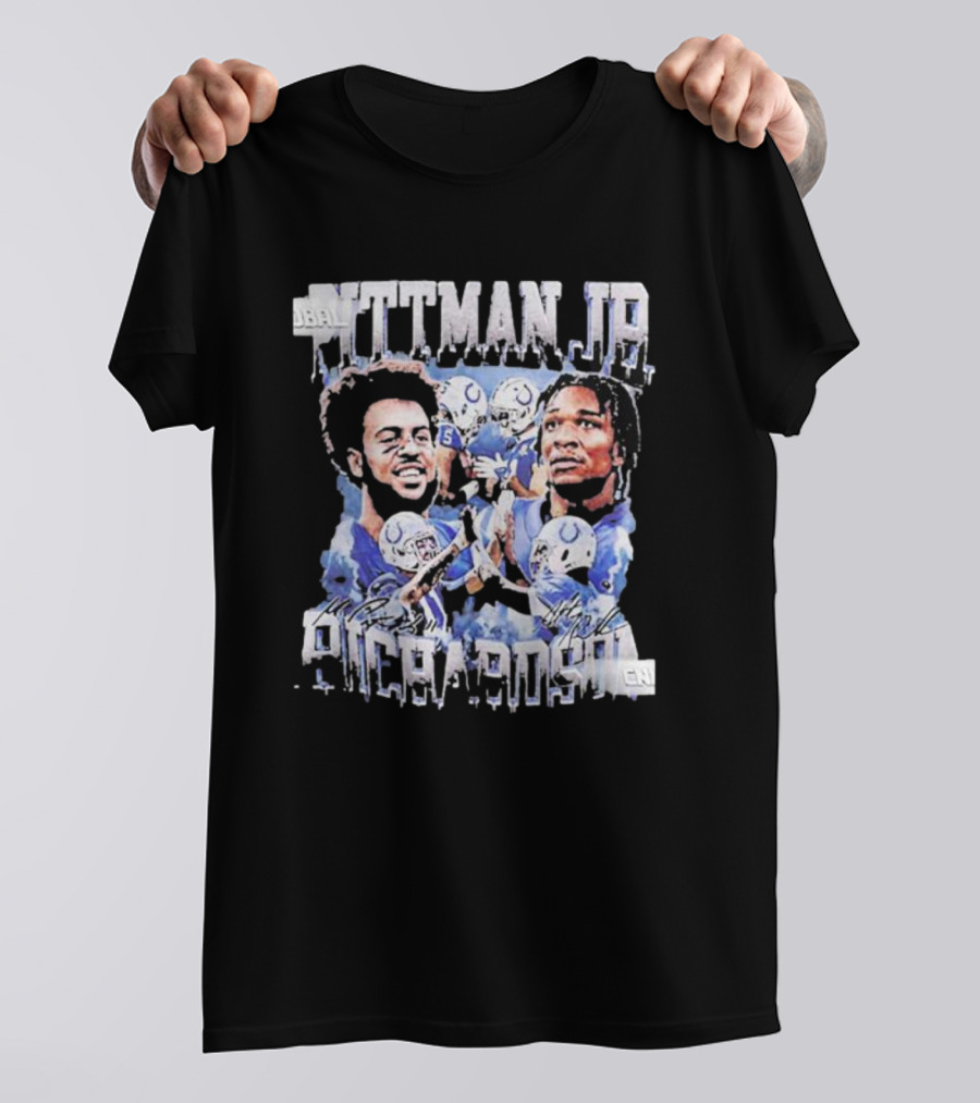 Pittman Jr Anthony Richardson Football Players Indianapolis Colts Shirt made from 100% pre-shrunk ring-spun cotton, unisex regular fit based on U.S. standard sizing. The shirt is designed, cut, sewn, and printed in the United States. Available in sizes S-5XL.