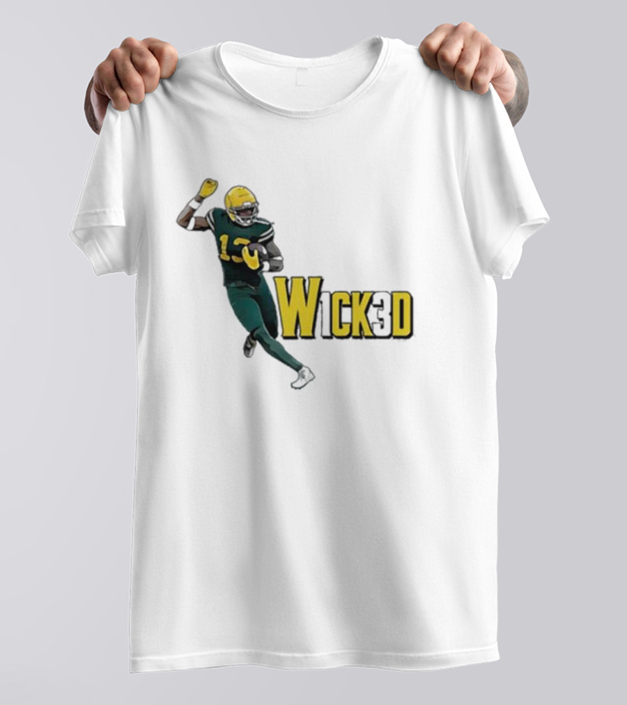 W1ck3d Football Player Yellow Helmet Green Jersey 13 Shirt made from 100% pre-shrunk ring-spun cotton, unisex regular fit based on U.S. standard sizing. The shirt is designed, cut, sewn, and printed in the United States. Available in sizes S-5XL.