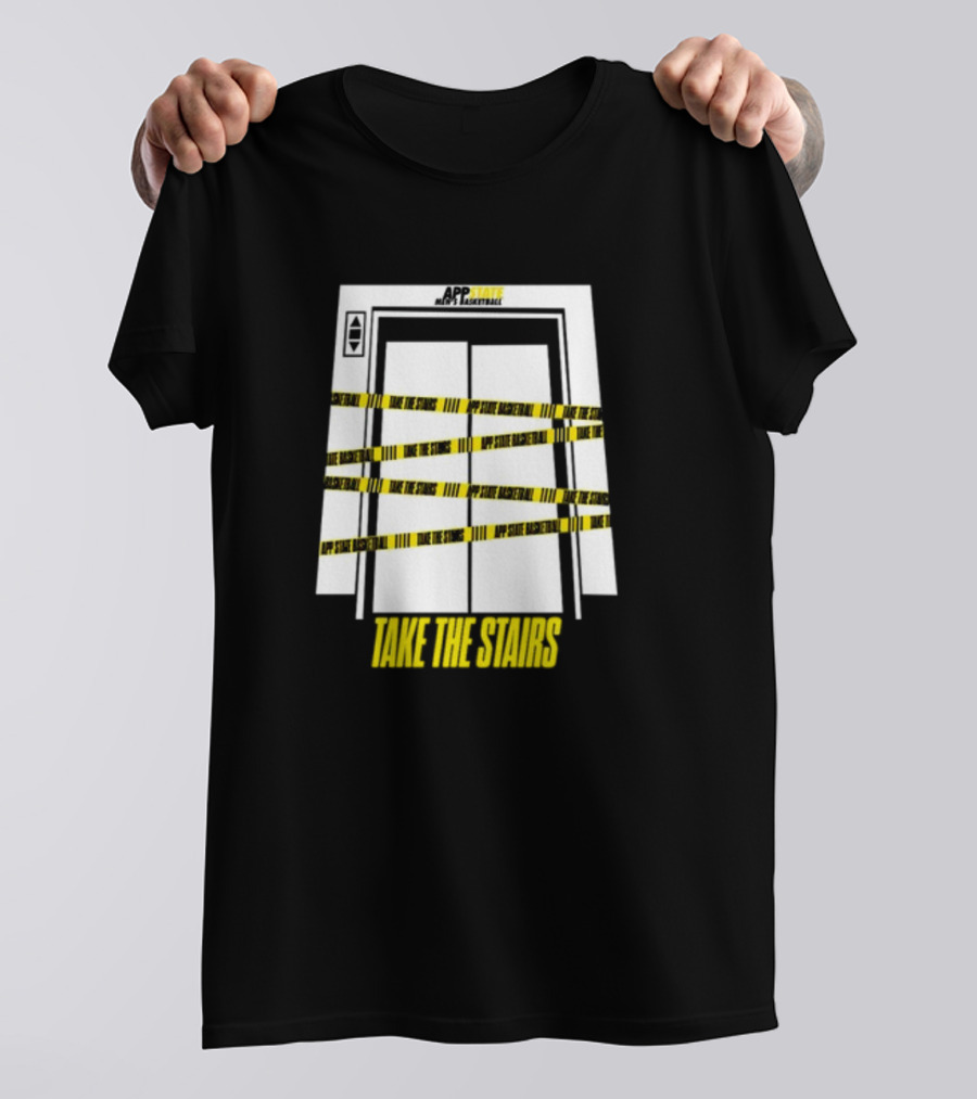 APP STATE TAKE THE STAIRS ELEVATOR DOORS CAUTION TAPE Shirt made from 100% pre-shrunk ring-spun cotton, unisex regular fit based on U.S. standard sizing. The shirt is designed, cut, sewn, and printed in the United States. Available in sizes S-5XL.
