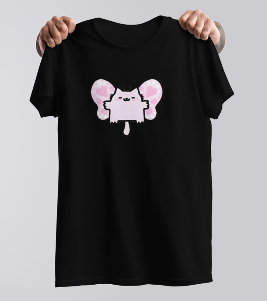 Sillynubcat Butterflycat Pink Heart Wings T-Shirt
