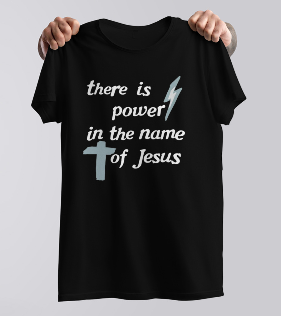 There Is Power In The Name Of Jesus Lightning Bolt Cross T-Shirt